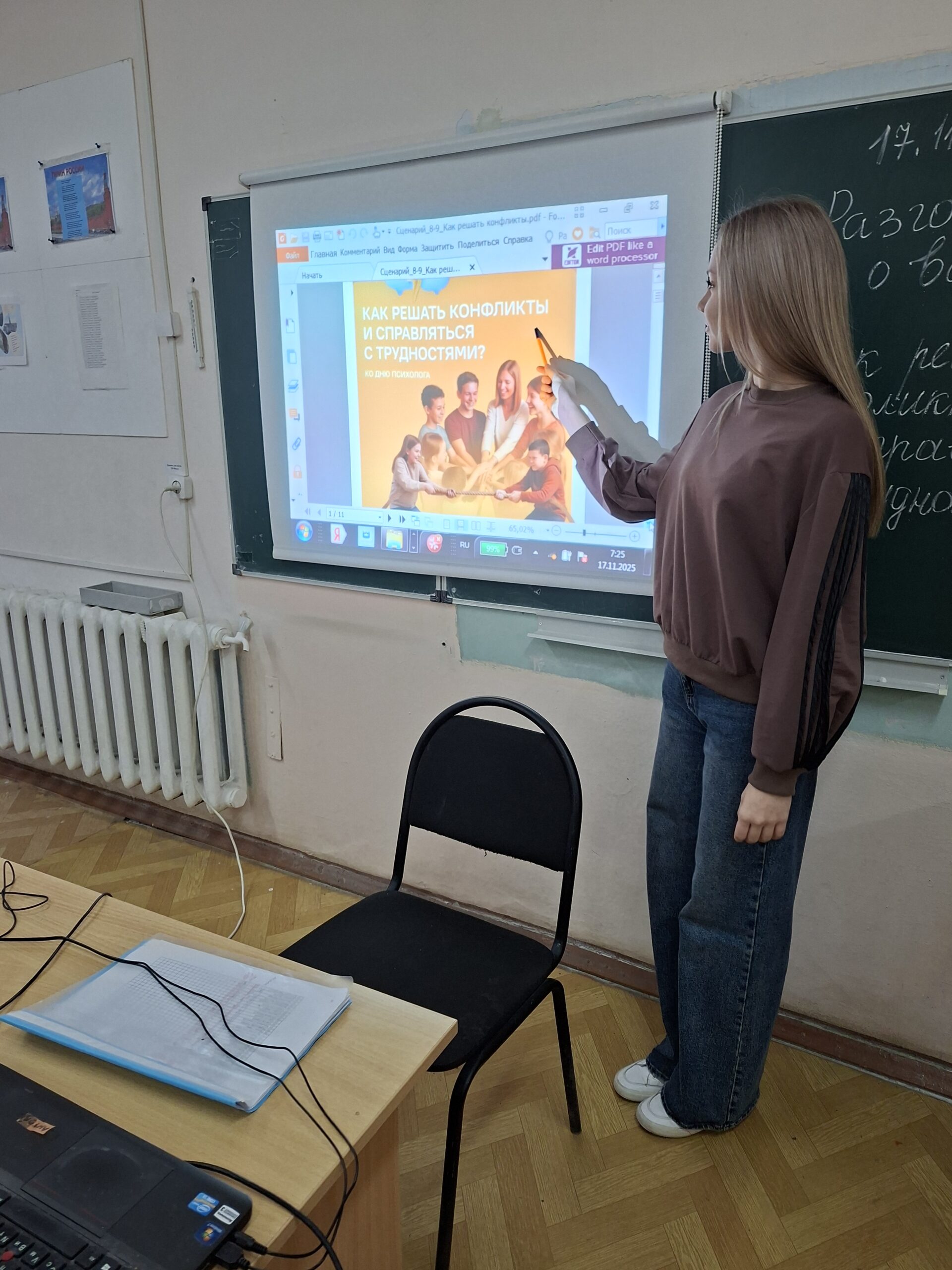 17 ноября 2025 года в ГБОУ СОШ №3 г.о.Чапаевск внеурочное занятие «Разговоры о важном» посвящено Дню психолога и теме «Пути урегулирования конфликтов и преодоления сложностей». Конфликтные ситуации — это неизбежная часть нашей жизни, и важно не избегать их, а развивать навыки поиска решений, удовлетворяющих обе стороны. Об этом говорили сегодня педагоги с обучающимися. В ходе занятия ребята пришли к выводу, что умение урегулировать конфликты — это важный навык, который пригодится в любой сфере жизни. Ведь именно умение договариваться и искать компромиссы лежит в основе успешных отношений, продуктивной работы и мирного сосуществования в обществе.