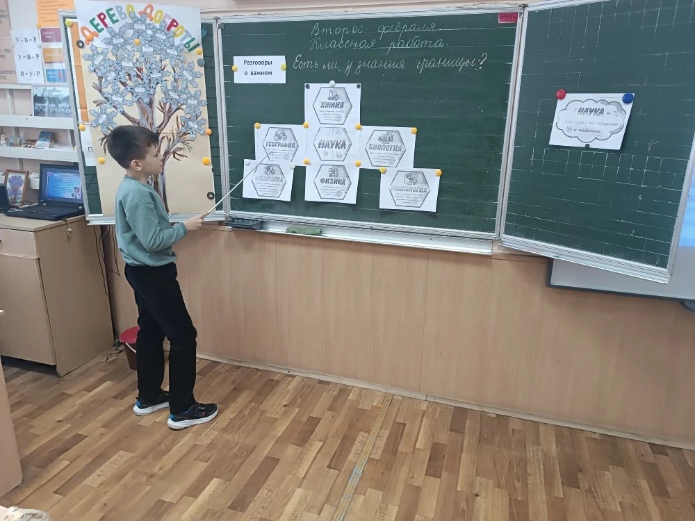 2 февраля очередное занятие из цикла «Разговоры о важном» прошло на тему «Есть ли у знания границы? Ко Дню науки». Цель этого занятия — сформировать у школьников представления о современных достижениях в науке, уважение к научному труду и понимание ответственности ученого, замотивировать к собственной исследовательской деятельности. Педагоги поговорили вместе с ребятами о том, как рождается знание, почему наука развивается через вопросы и сомнения, и зачем человеку постоянно расширять границы понимания мира — от простых наблюдений до сложных открытий. Чем больше мы узнаём, тем больше вопросов возникает, и в этом кроется великая сила науки и человеческого разума. Давайте продолжать учиться с интересом и смелостью, открывая для себя новые горизонты!
